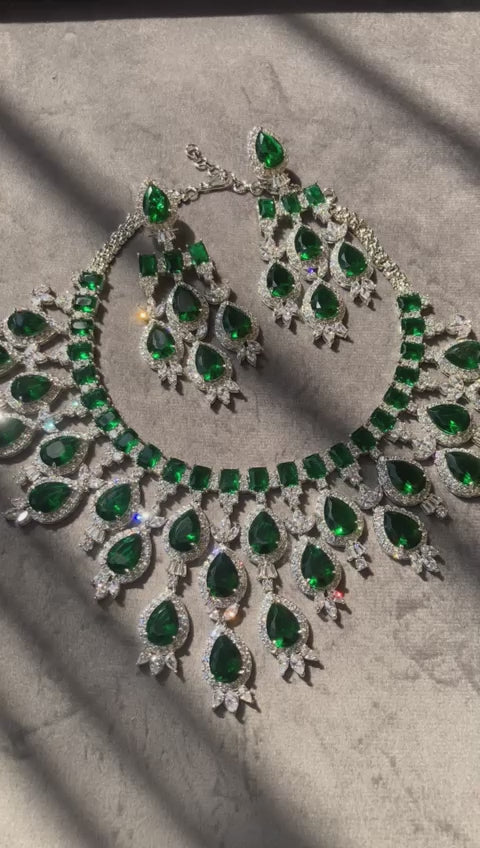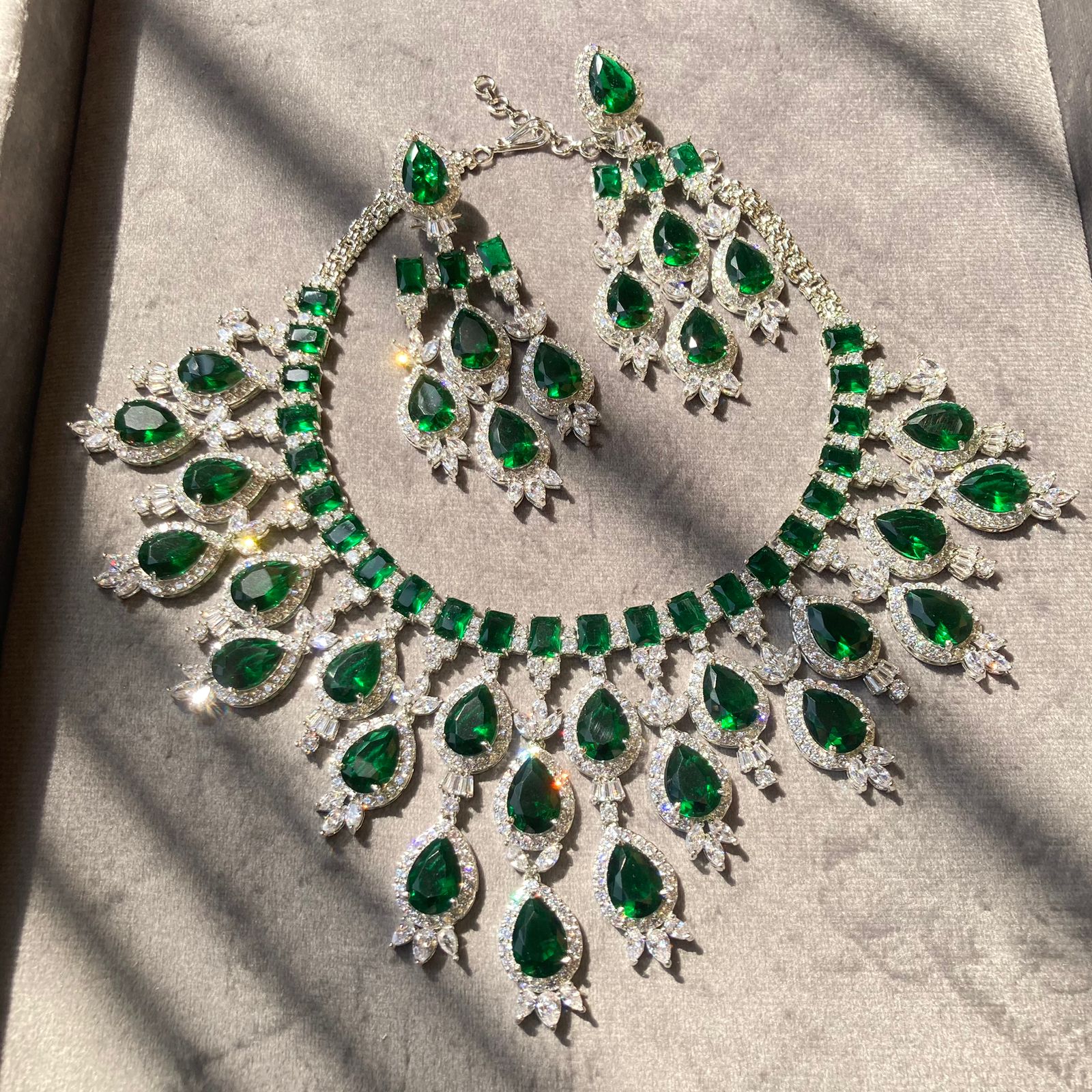 High Quality CZ Premium American Diamond choker with Earrings jewelry set•cubic zirconia cz •american diamond