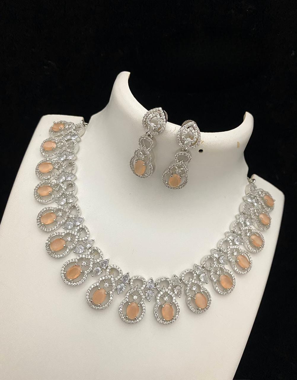 American Diamond Necklace with Earrings Jewelry Set , Ad set , Diamond Jewellery