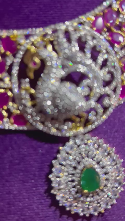 Elevate your style with our High Quality Super Luxury choker set and Earrings jewelry set, featuring exquisite southindian Diamond Necklace. Made with superior craftsmanship, this set adds a touch of elegance and sophistication to any outfit. Experience the luxurious look and feel of high quality materials.