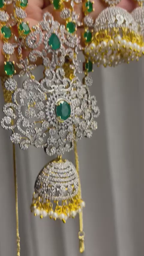 southindian jewellery set•High quality lines diamond grand heavy set with screw back long grand earring•trending haram