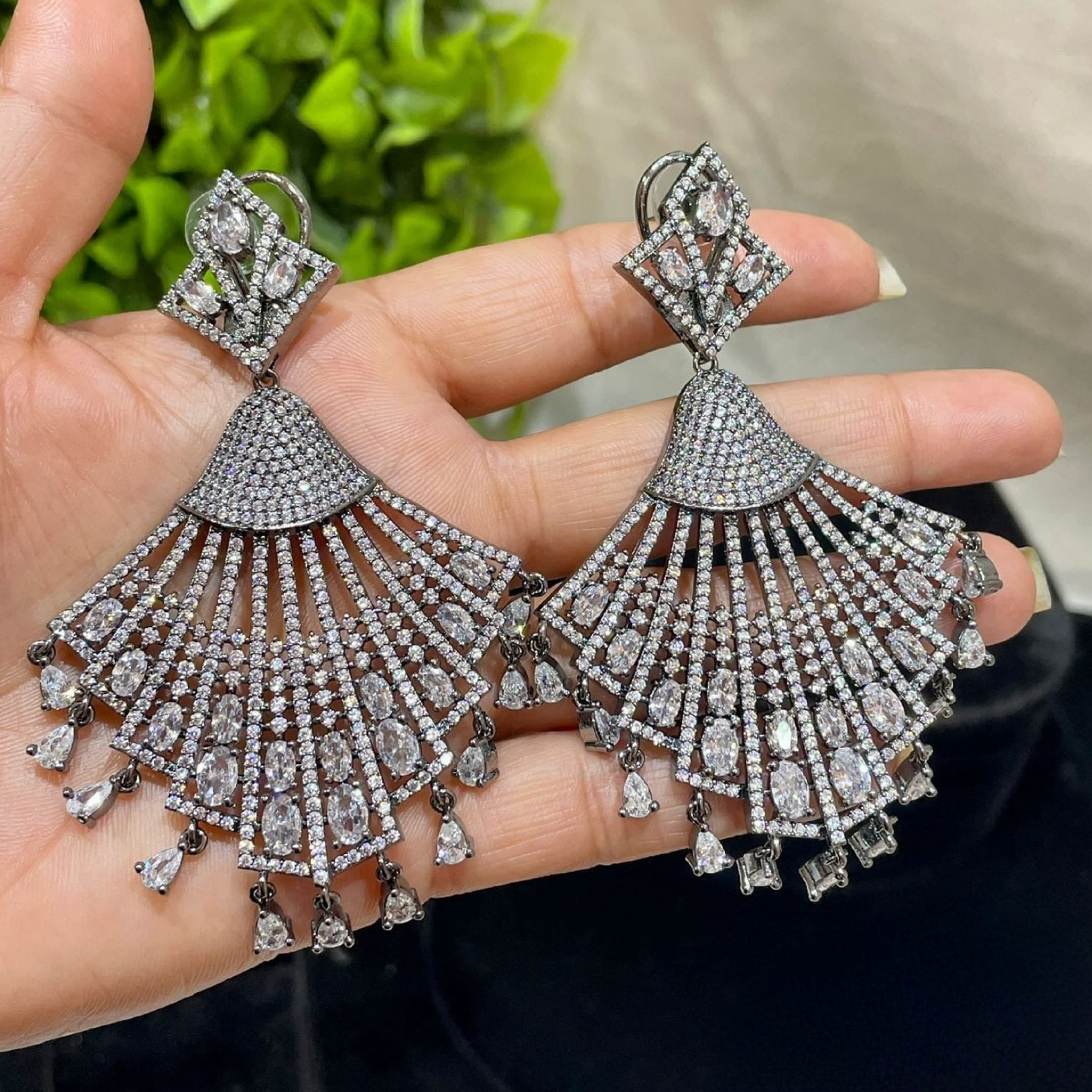 "Dazzling Floral Elegance" by Sagunittu Jewel embodies timeless sophistication. These exquisite long drop earrings feature intricately crafted American diamond flowers that sparkle with radiant allure. The delicate petals delicately cascade, creating a captivating floral pattern that adds a touch of nature's beauty to any ensemble. Meticulously designed by Sagunittu Jewel, the earrings blend modern glamour with classic charm. The lustrous American diamonds impart a captivating brilliance, while the elongated drop design enhances the graceful silhouette. Perfect for special occasions or to elevate everyday elegance, these earrings are a testament to craftsmanship and style. Elevate your look with "Dazzling Floral Elegance" β a true expression of refined femininity.