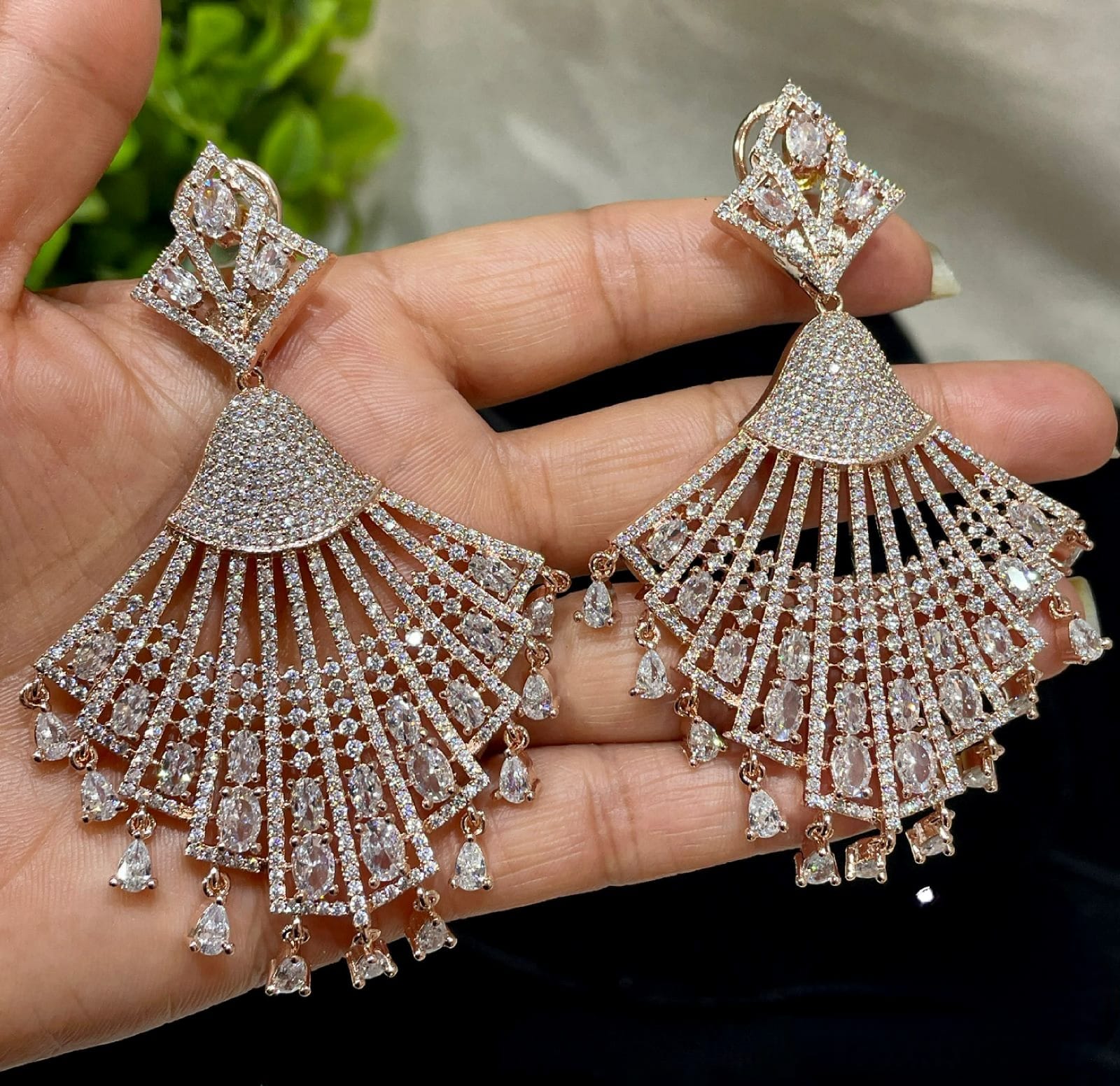 Dazzling Floral Elegance: American Diamond Long Drop Earrings