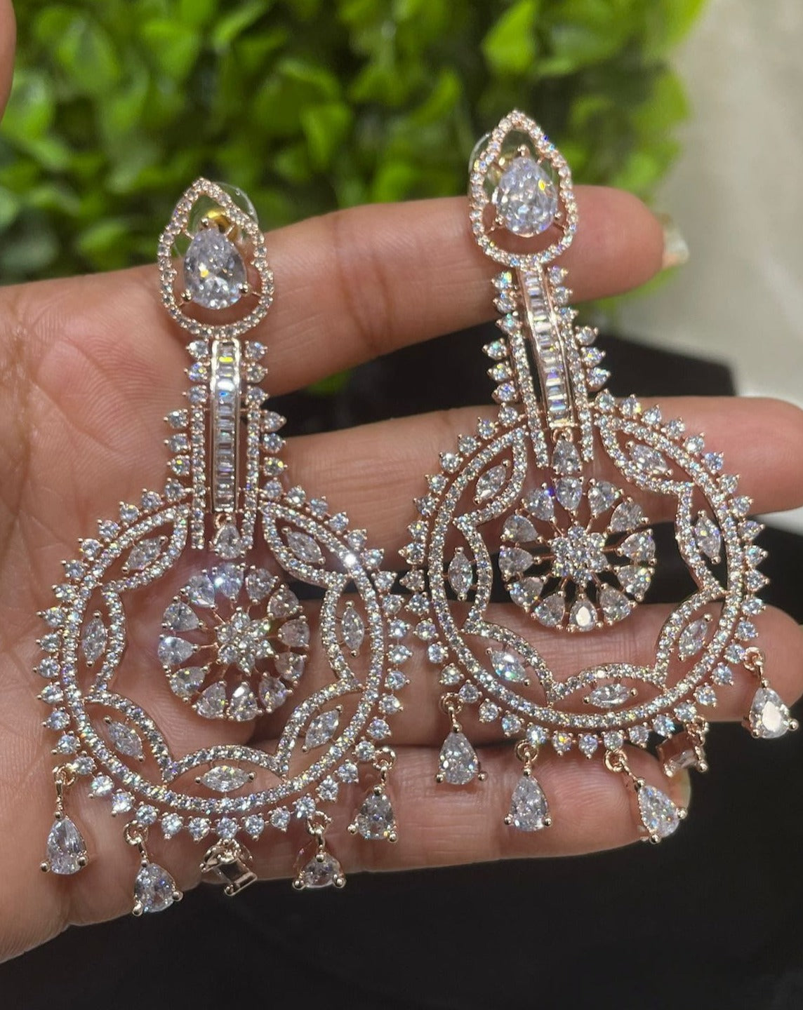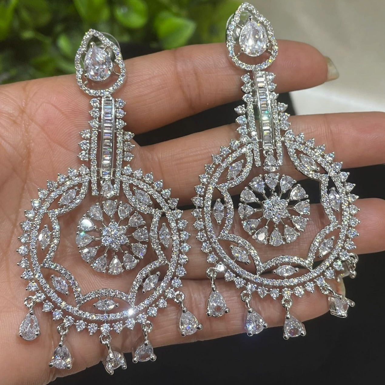 Elegant Fusion: Sagunittu-Inspired American Diamond Chandelier Earrings for Timeless Grace