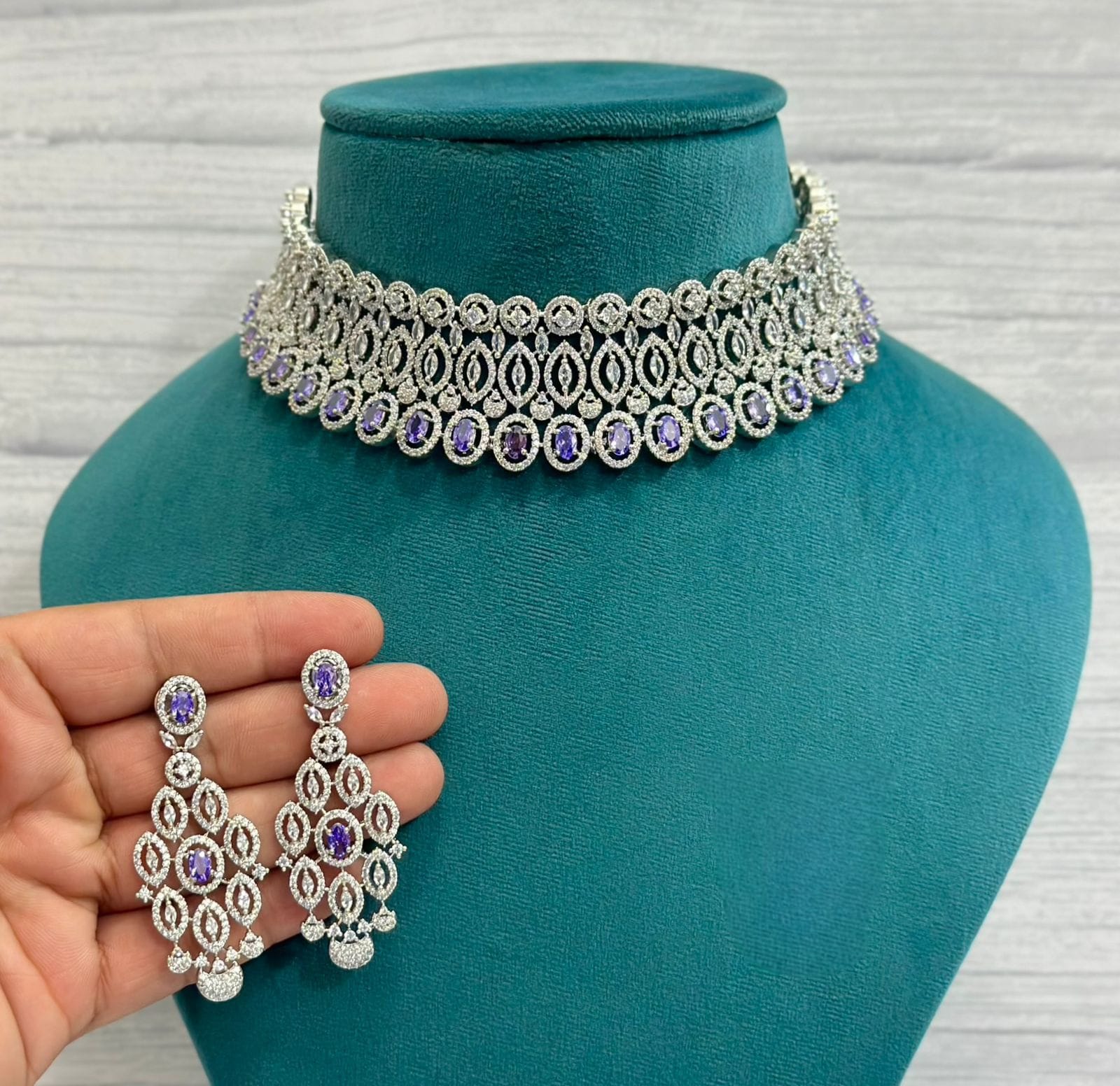 Exquisite American Diamond Necklace Set with Earrings - Premium Quality Jewelry , Statement Necklace