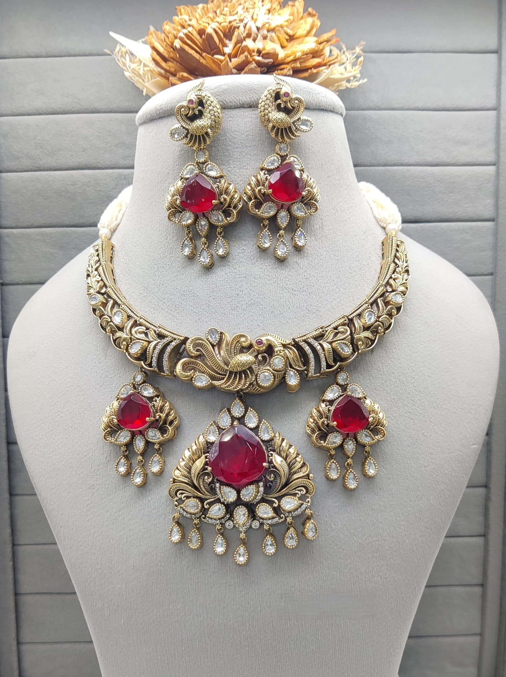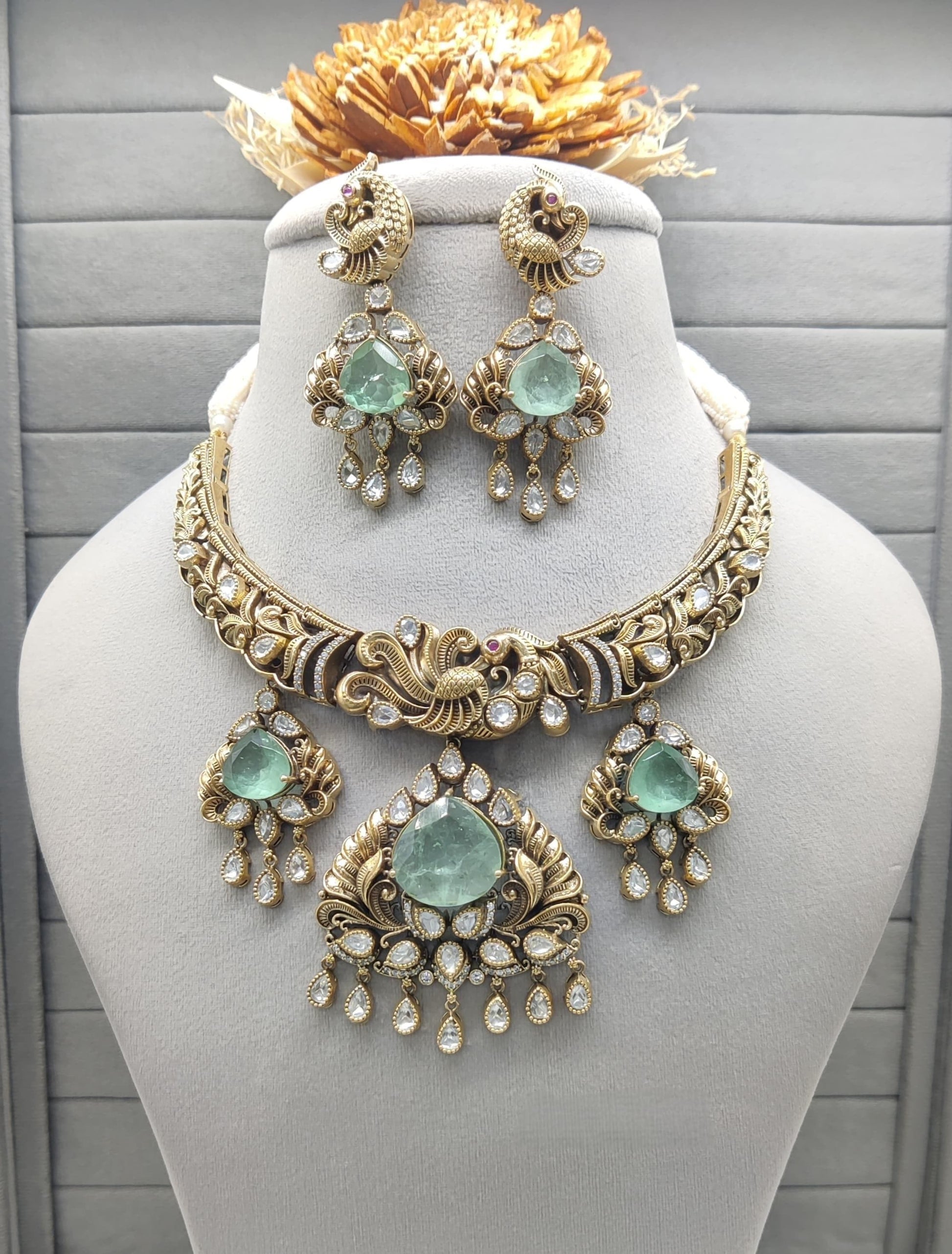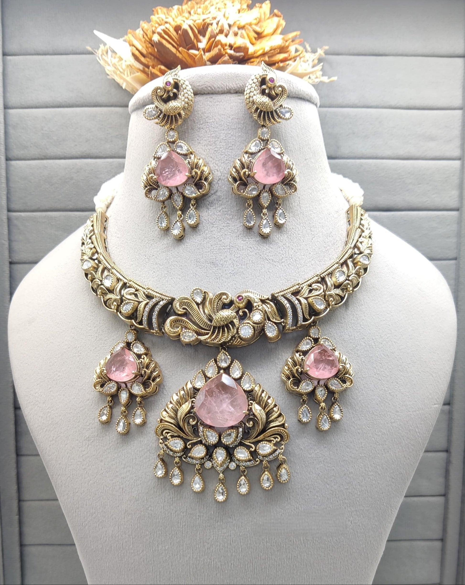 Crafted with care and precision, the Kundan work reflects a classic Victorian charm that pairs seamlessly with both traditional and modern attire. Make a lasting impression with this premium-quality jewelry set that embodies grace, style, and opulence.