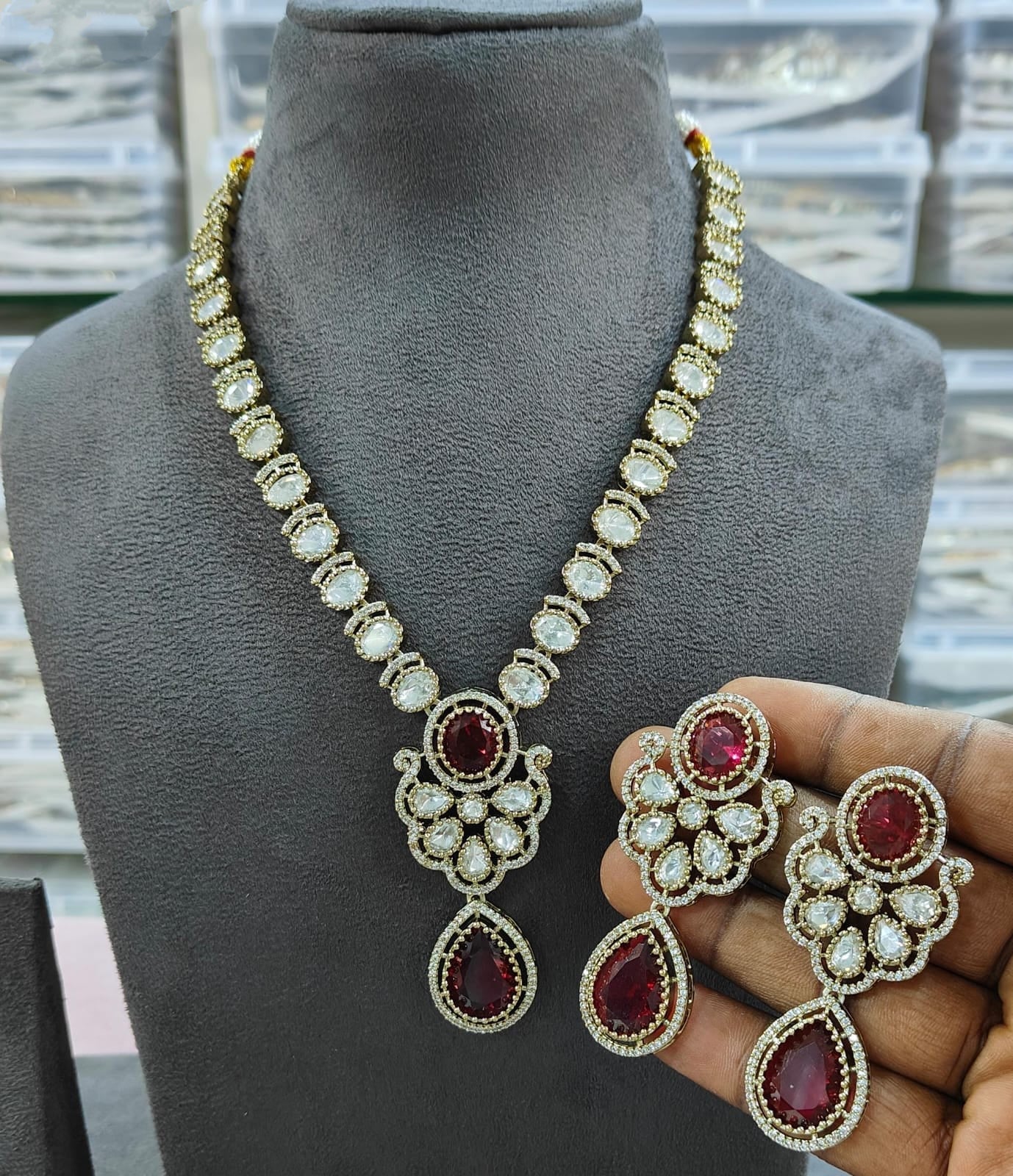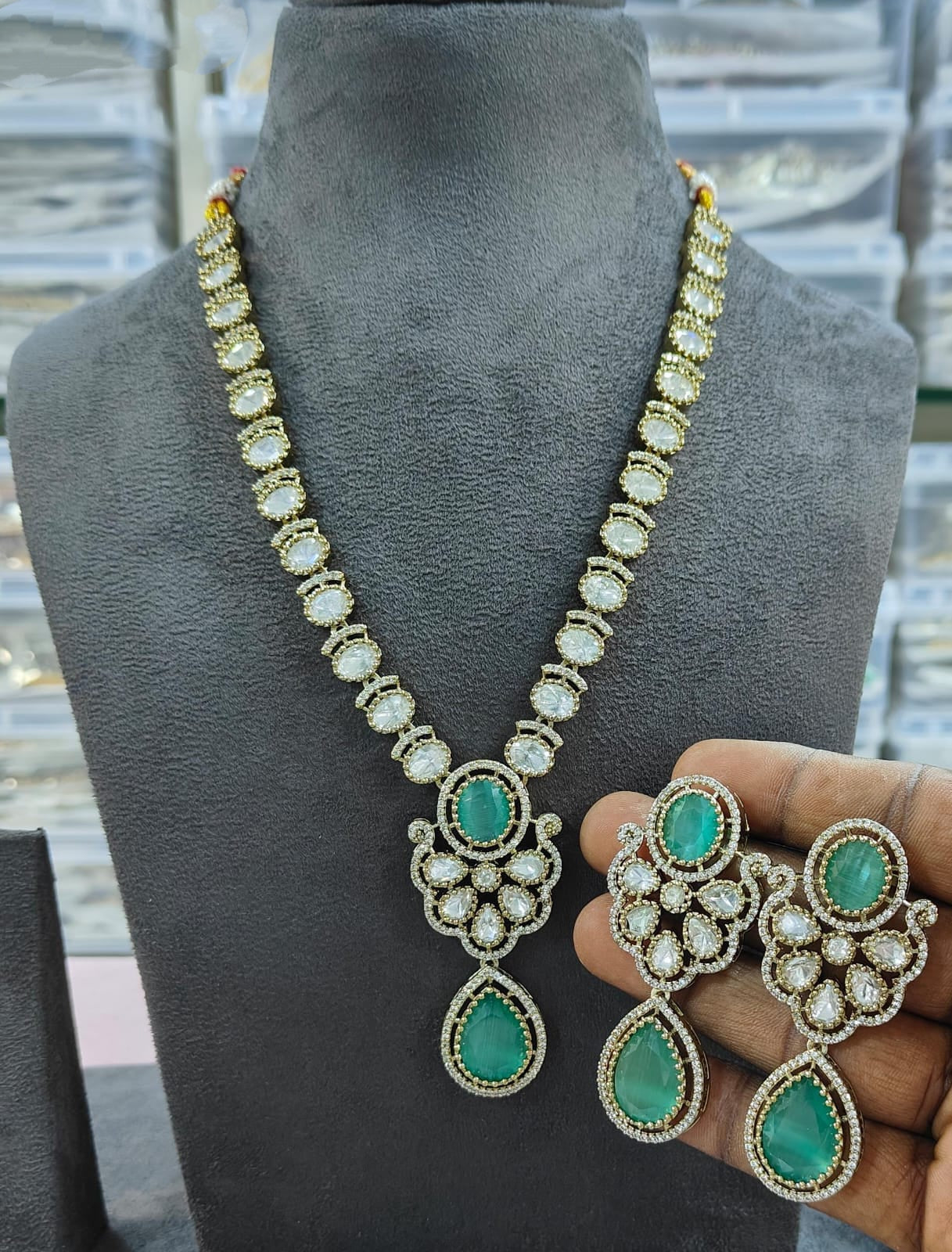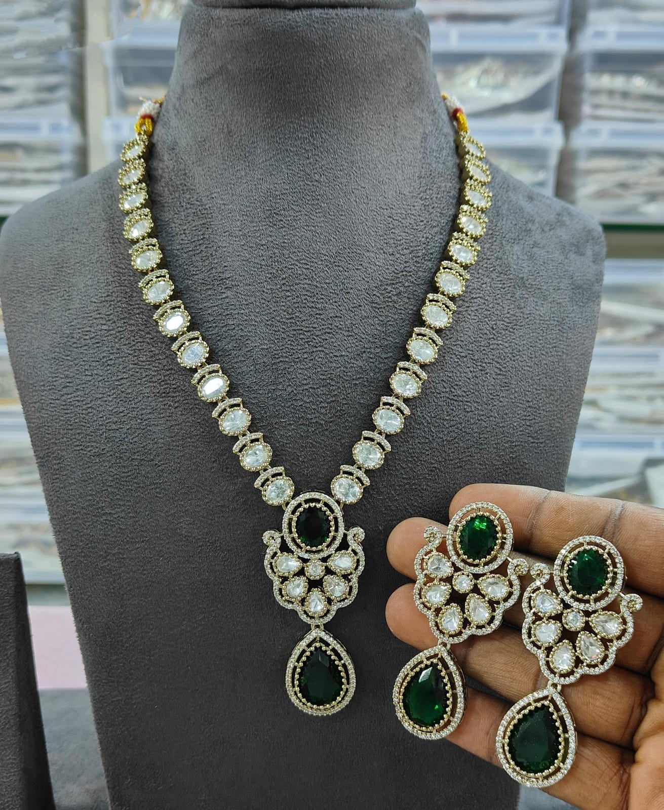 Add a touch of royal elegance to your collection with our Premium Moissanite Kundan Pendant Set with Earrings, designed for those who appreciate timeless beauty and fine craftsmanship. Featuring brilliant Moissanite stones and intricate Kundan work, this exquisite set combines traditional artistry with a modern twist, perfect for weddings, festive occasions, or special celebrations.