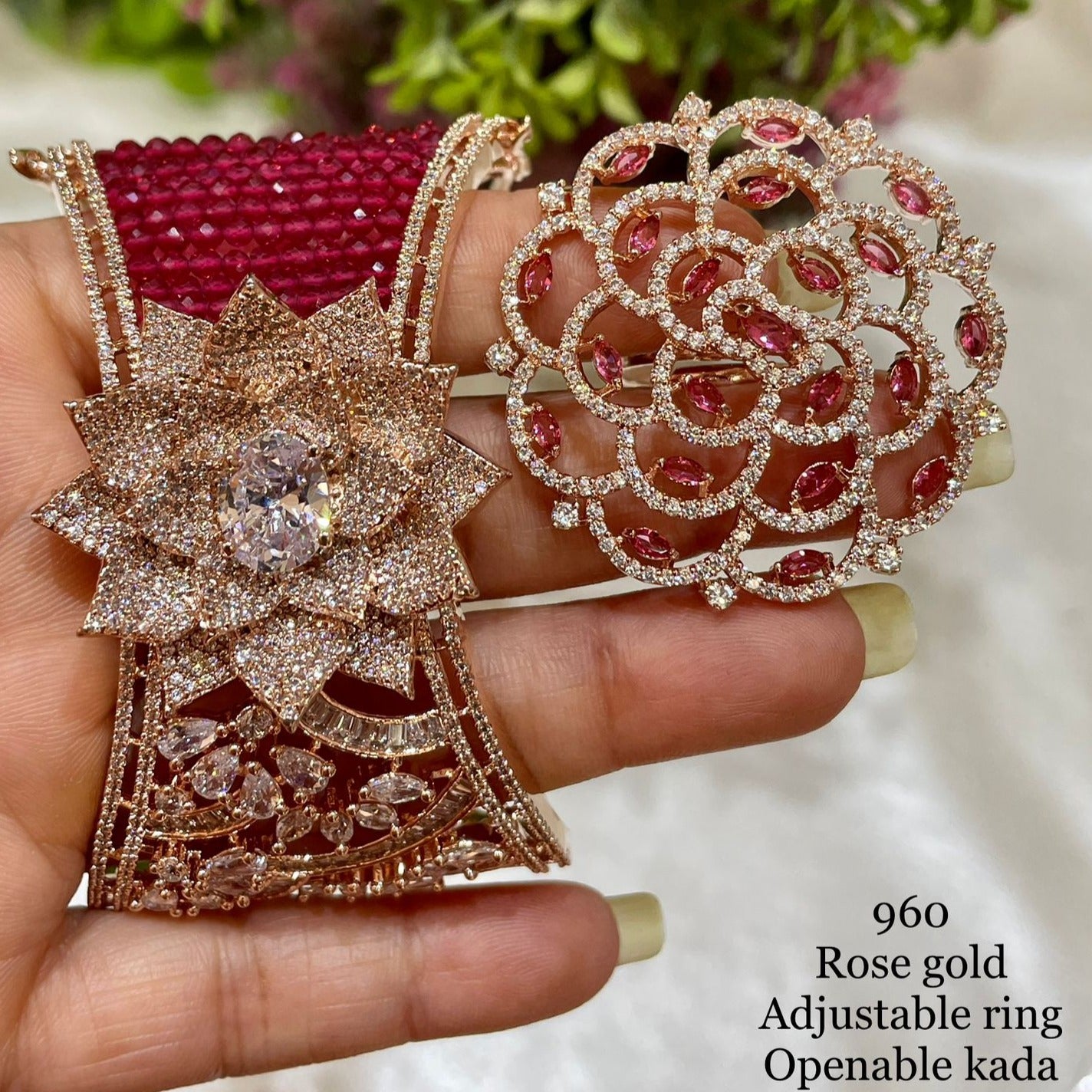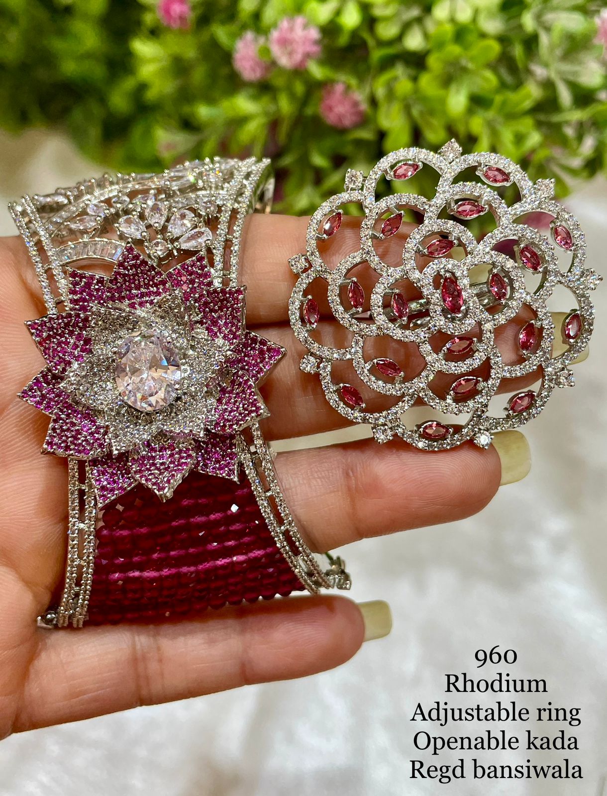 Timeless Radiance Set: American Diamond Adjustable Ring, Bracelet, Engagement, and Wedding Ring Ensemble