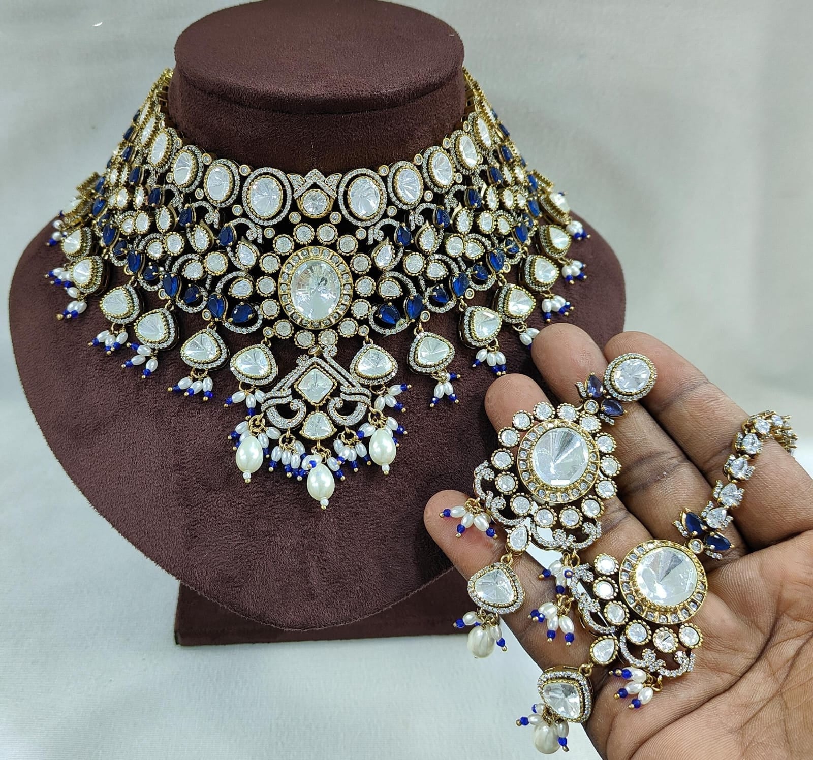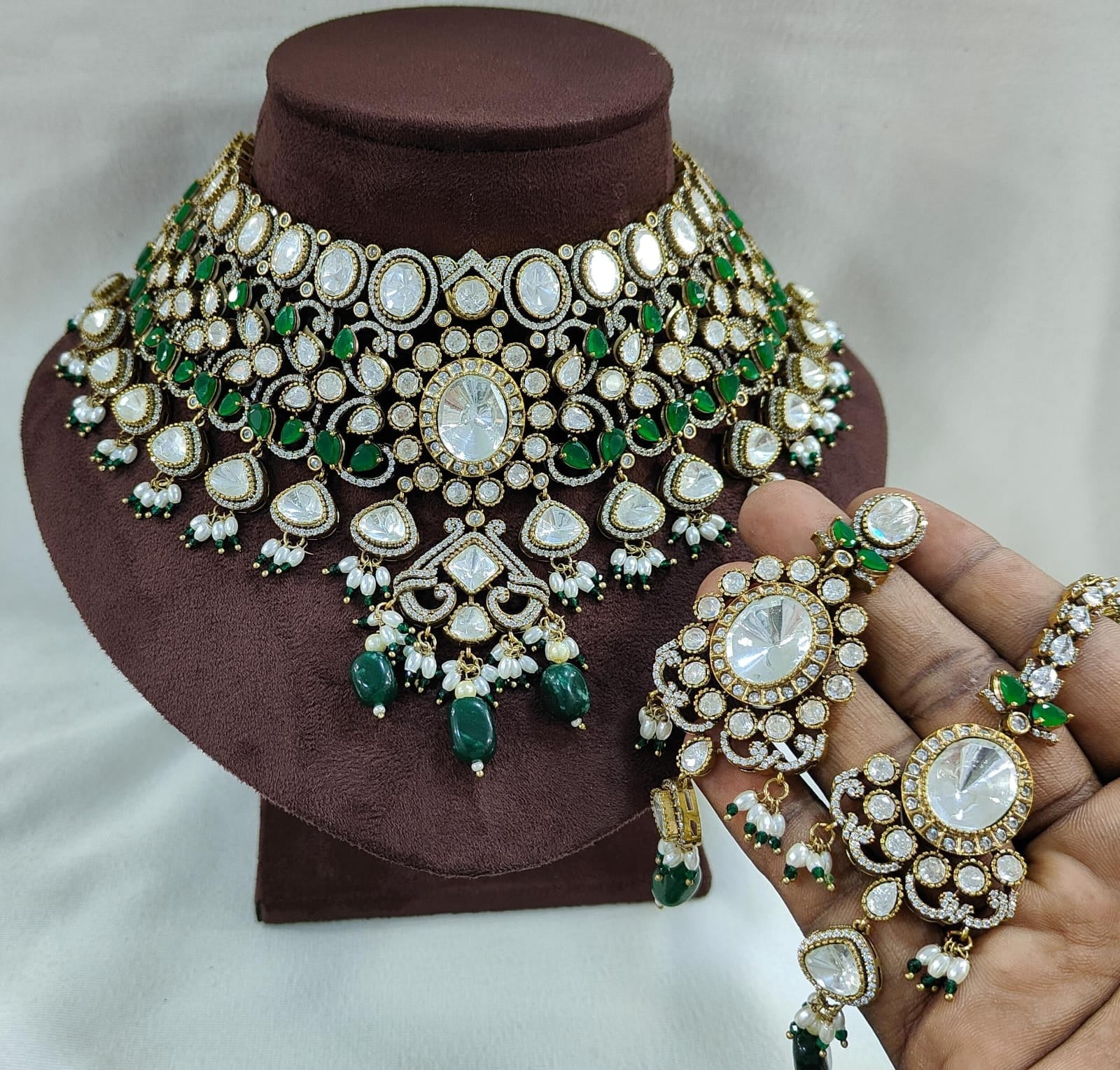 Luxury Moissanite Kundan & AD Choker Set with Earrings & Maangtikka | Premium Bridal & Party Wear Jewellery