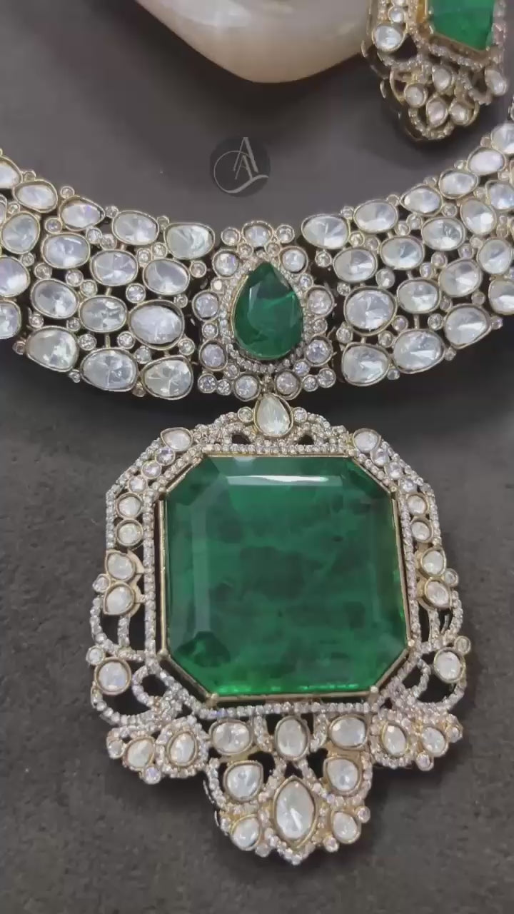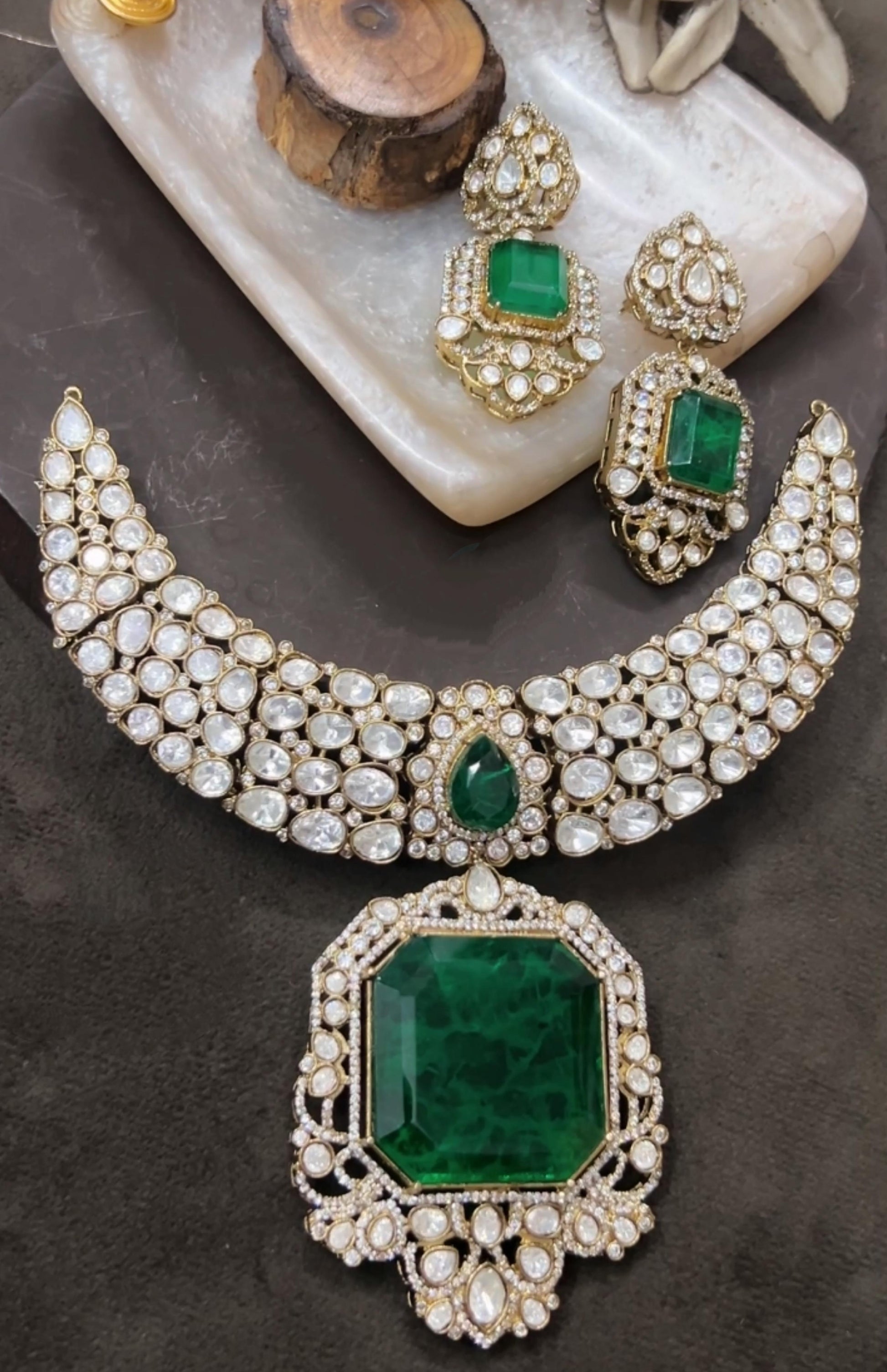 Elevate your bridal look with this Premium Moissanite Kundan Polki Choker Jewelry Set, designed for those who appreciate heritage and craftsmanship. Handcrafted with precision, this elegant choker features shimmering moissanite stones, traditional kundan detailing, and intricate polki work, paired with matching earrings for a complete regal ensemble.