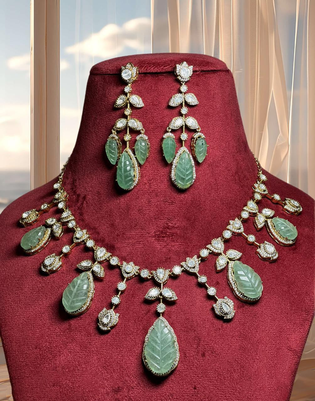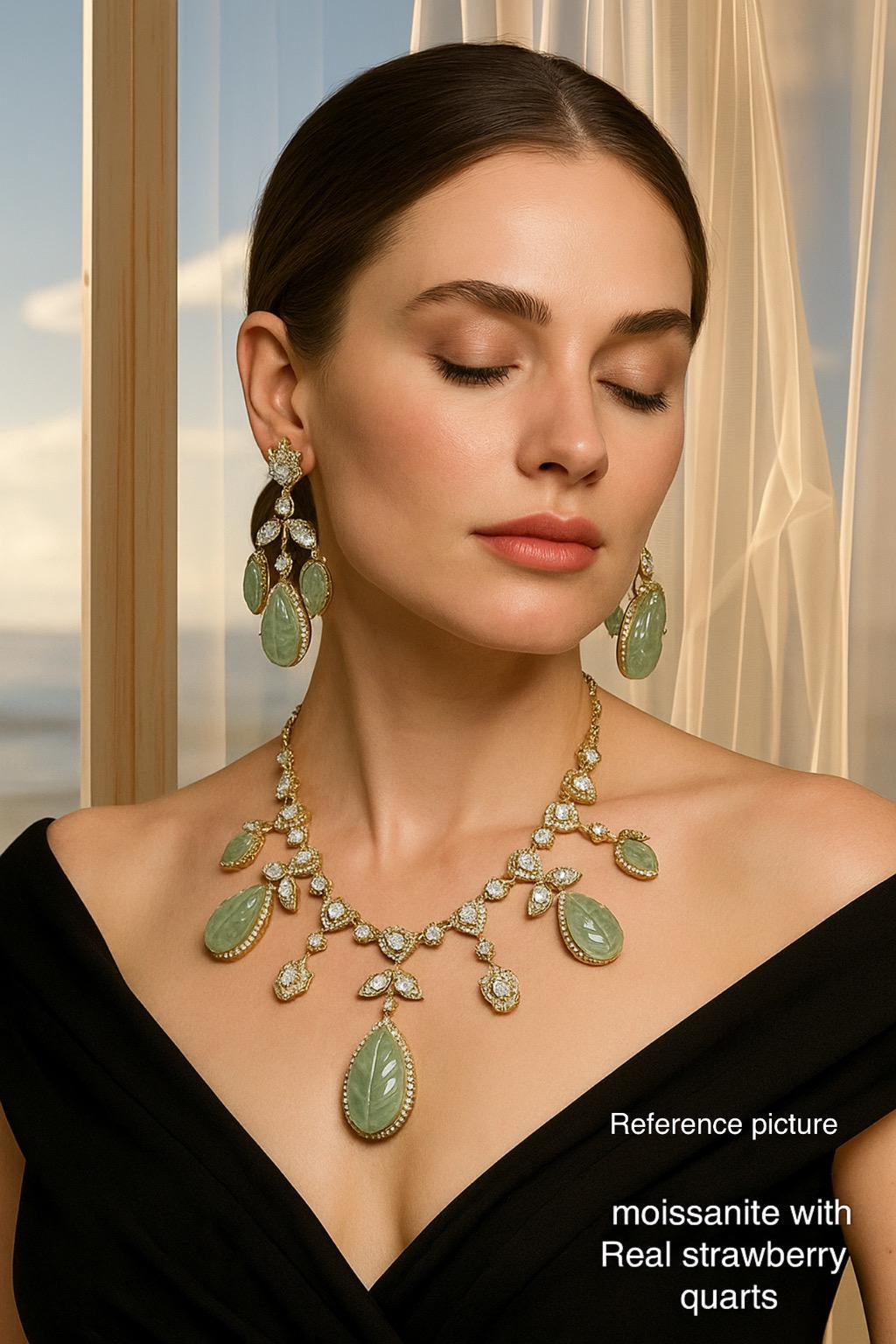 Elevate your jewelry collection with this Premium Moissanite Kundan Necklace Set, beautifully adorned with natural Strawberry Quartz beads and dazzling moissanite stones. This handcrafted jewelry set includes a graceful necklace and matching earrings — perfect for bridal, festive, or statement looks.