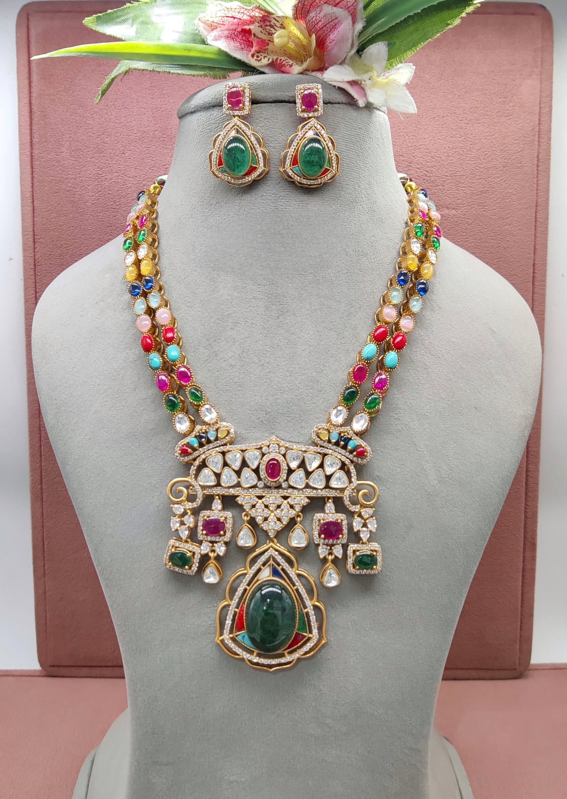 Premium Kundan Long Choker Set with Earrings - Luxurious Jewelry