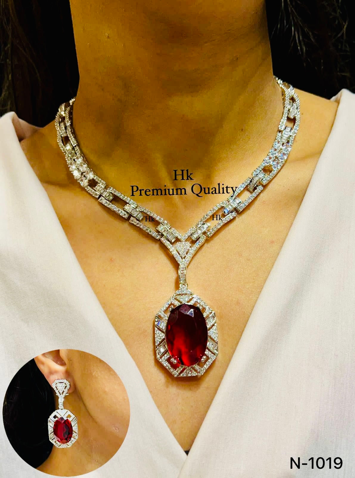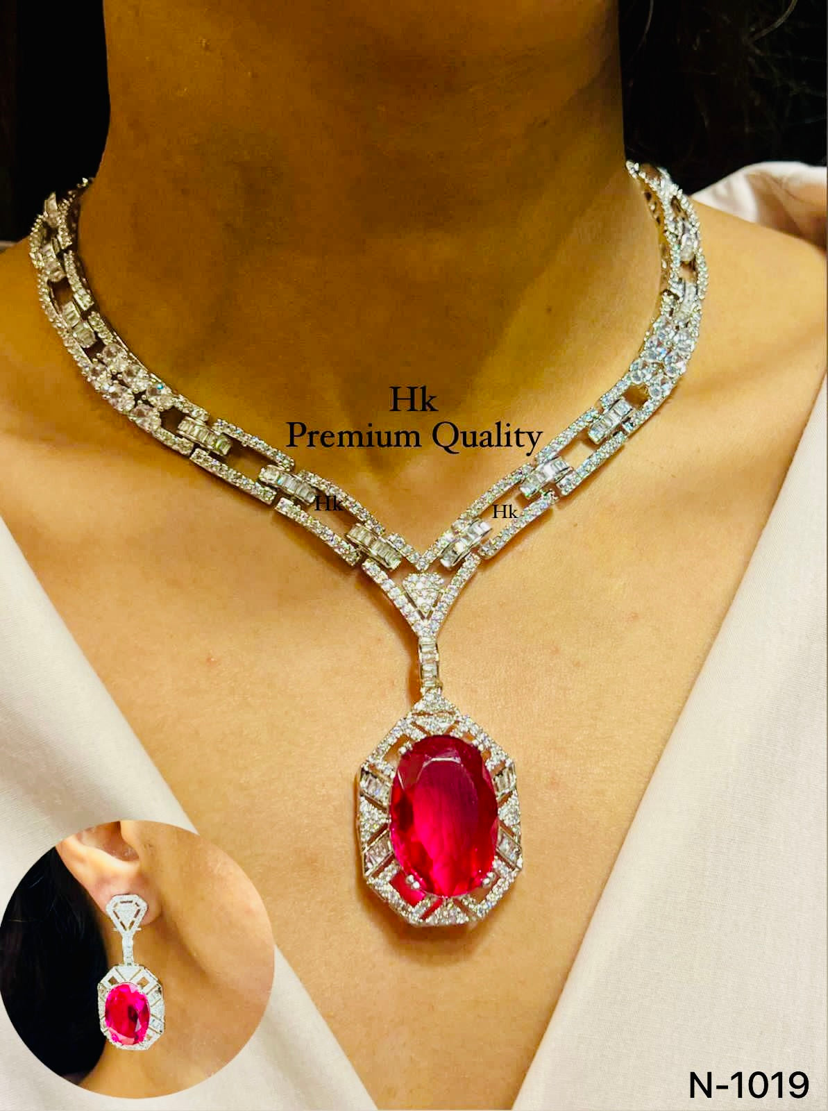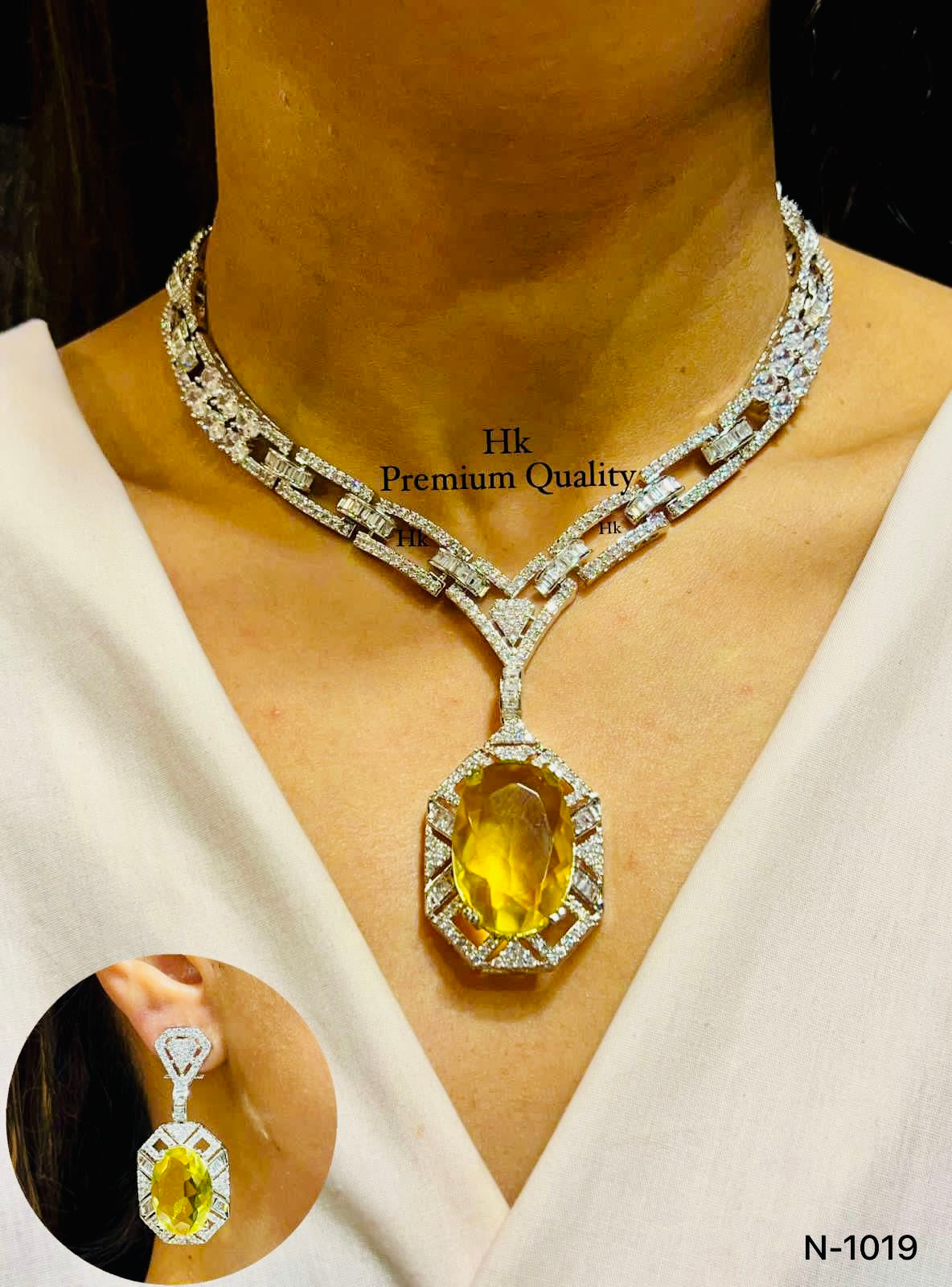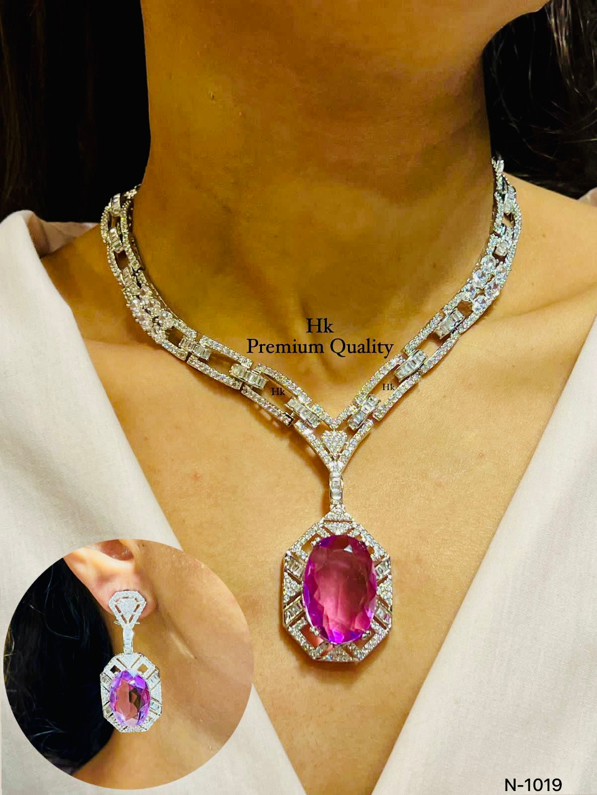 Premium Quality AD CZ Pendant Necklace Set with Earrings – Elegant & Timeless Jewelr