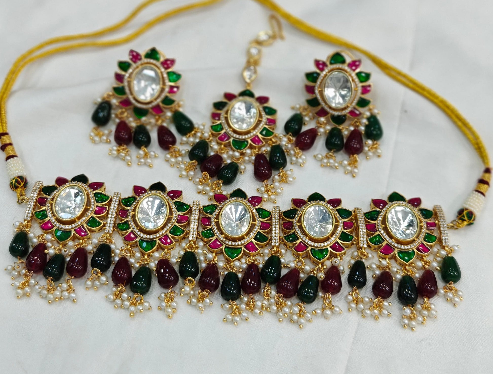 Premium Quality Kundan Choker Set with Earrings and Maangtikka Jewelry