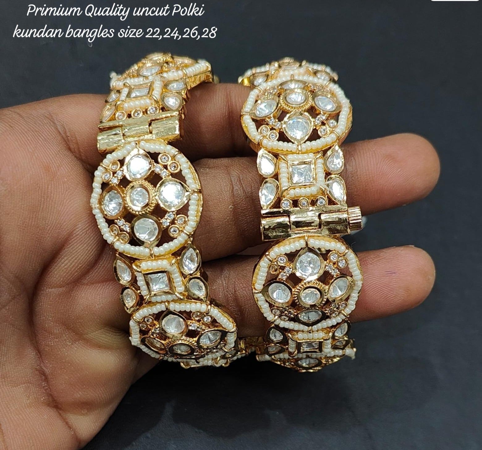 Elevate your traditional jewelry collection with our Premium Quality Uncut Polki Kundan Bangles Set. These exquisite bangles are a perfect blend of classic elegance and intricate craftsmanship, featuring uncut Polki stones set in a luxurious Kundan design. Each bangle is meticulously handcrafted to ensure a flawless finish, making them ideal for weddings, festivals, and special occasions. The rich, timeless appeal of these bangles adds a touch of regal charm to any outfit. Whether you're a bride or a jewelry enthusiast, this Kundan Bangles Set promises to be a cherished addition to your collection, radiating sophistication and beauty.