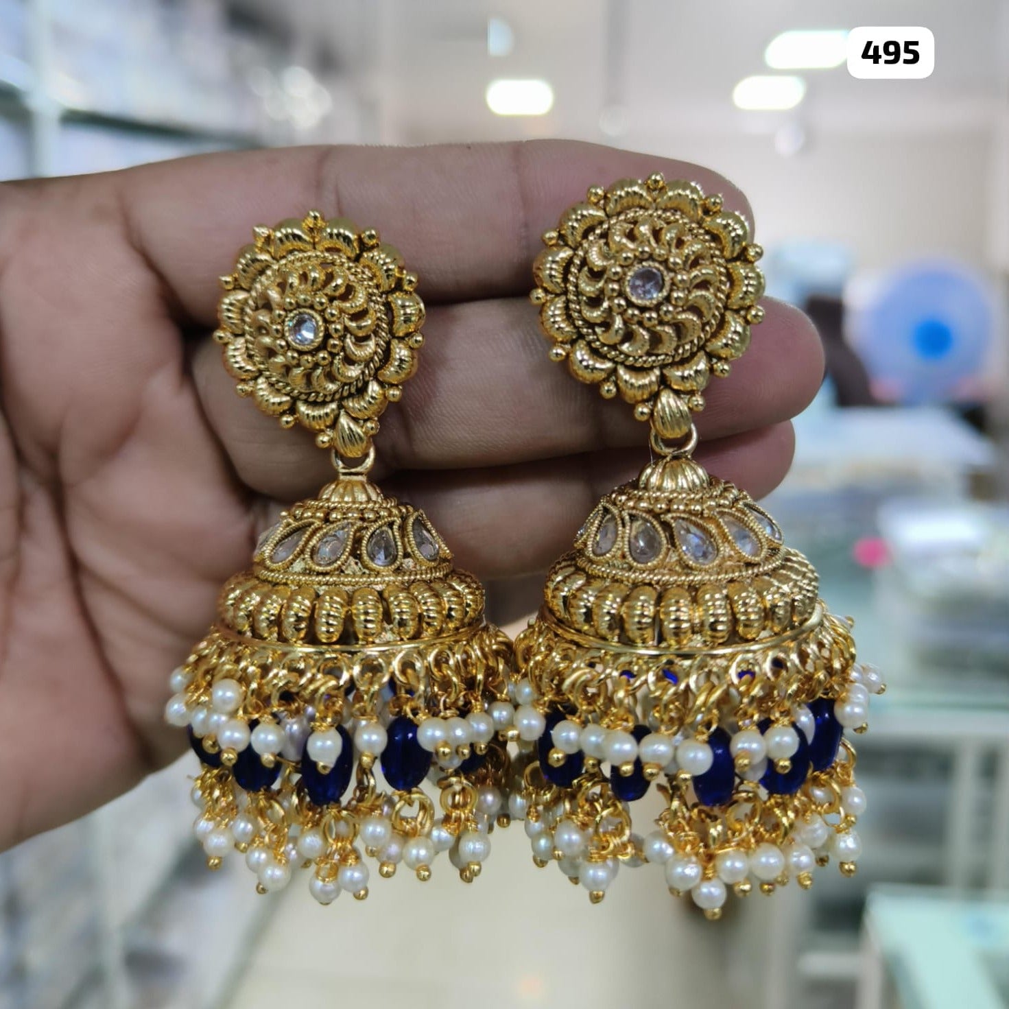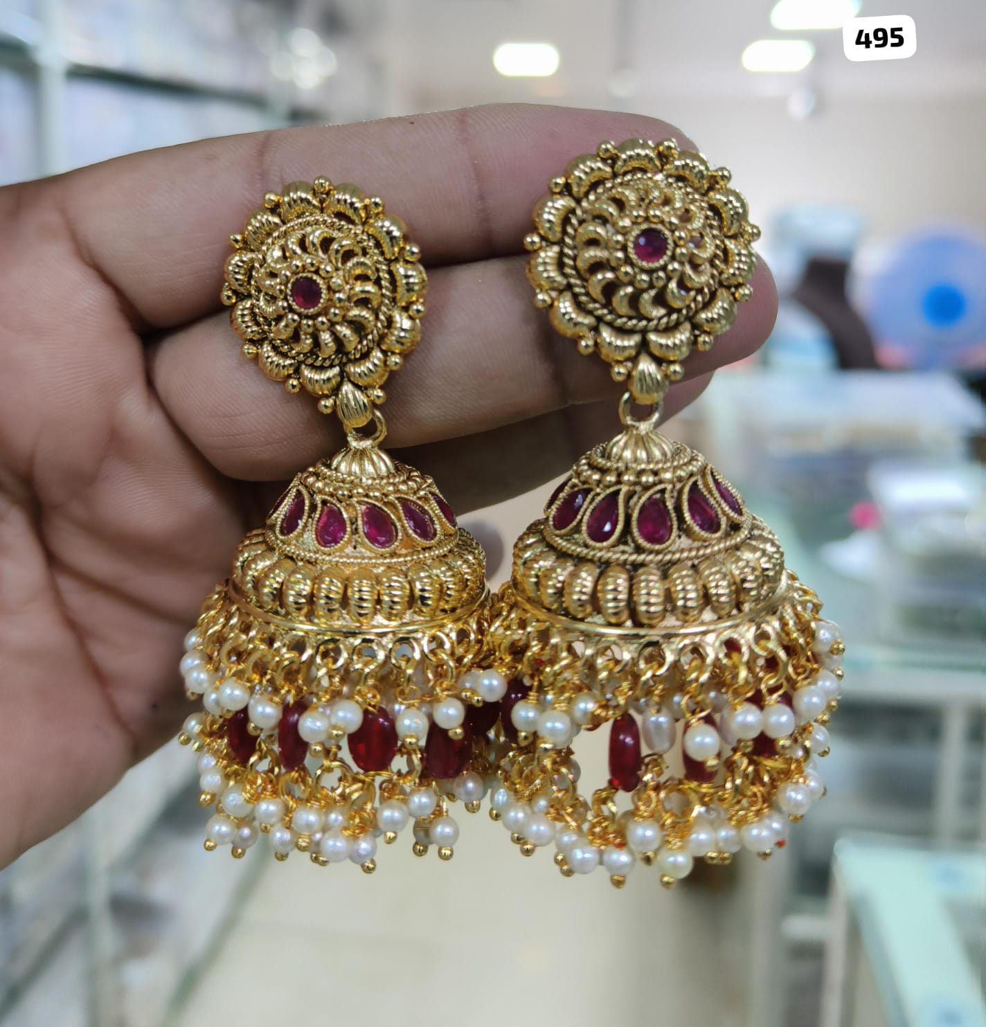 Our jhumkas are designed with intricate detailing, showcasing the artistry and craftsmanship of our skilled artisans. The shimmering gold-plated finish adds a touch of opulence, making these earrings perfect for weddings, festivals, and special events.