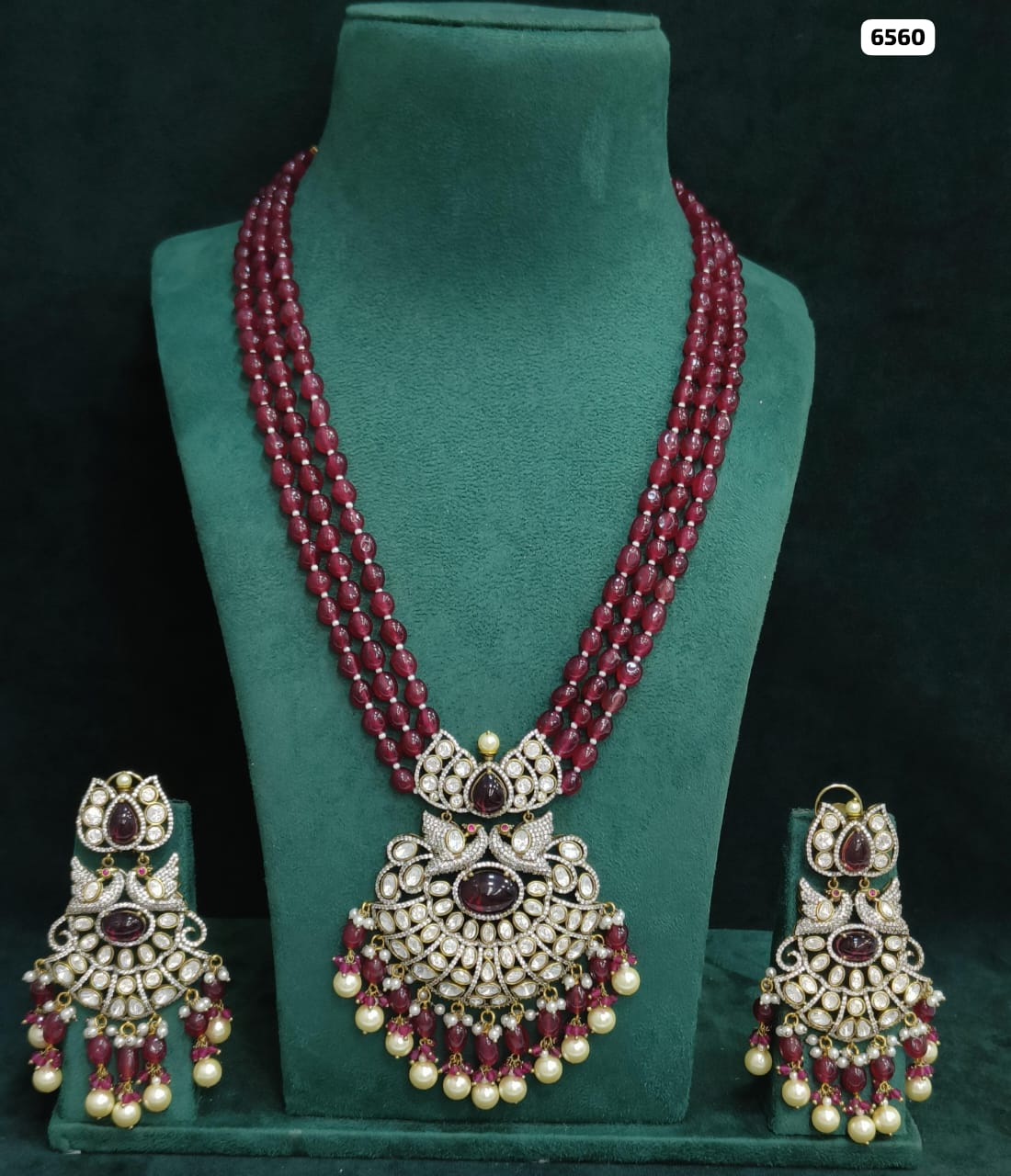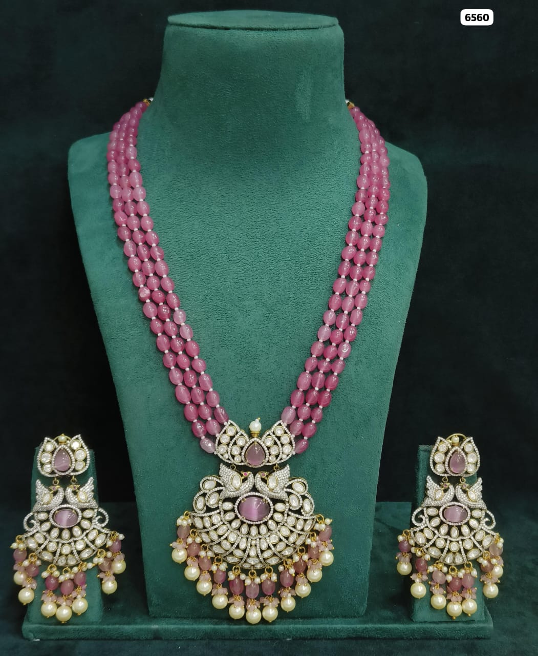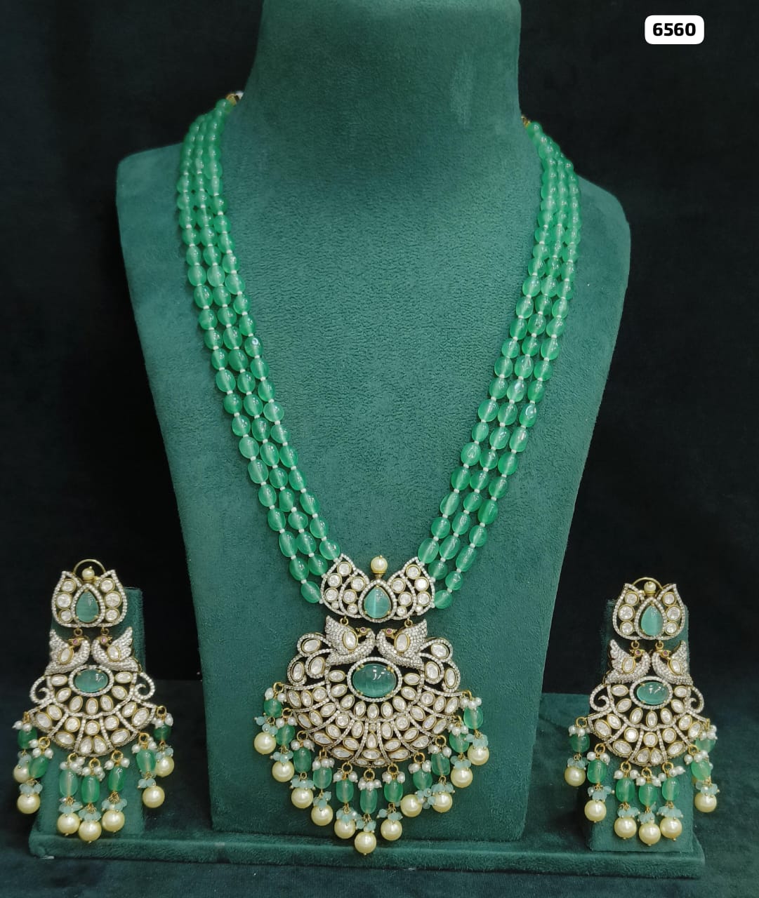 Royal Fusion, Kundan and Victorian Long Haar Ensemble with Beaded Elegance and Matching Earrings