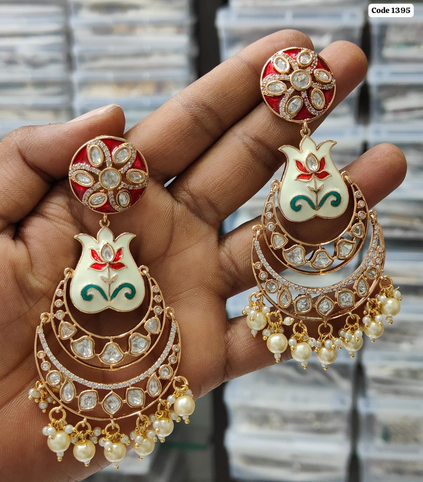 Royal Radiance: Handpainted Meenakari Kundan Earrings