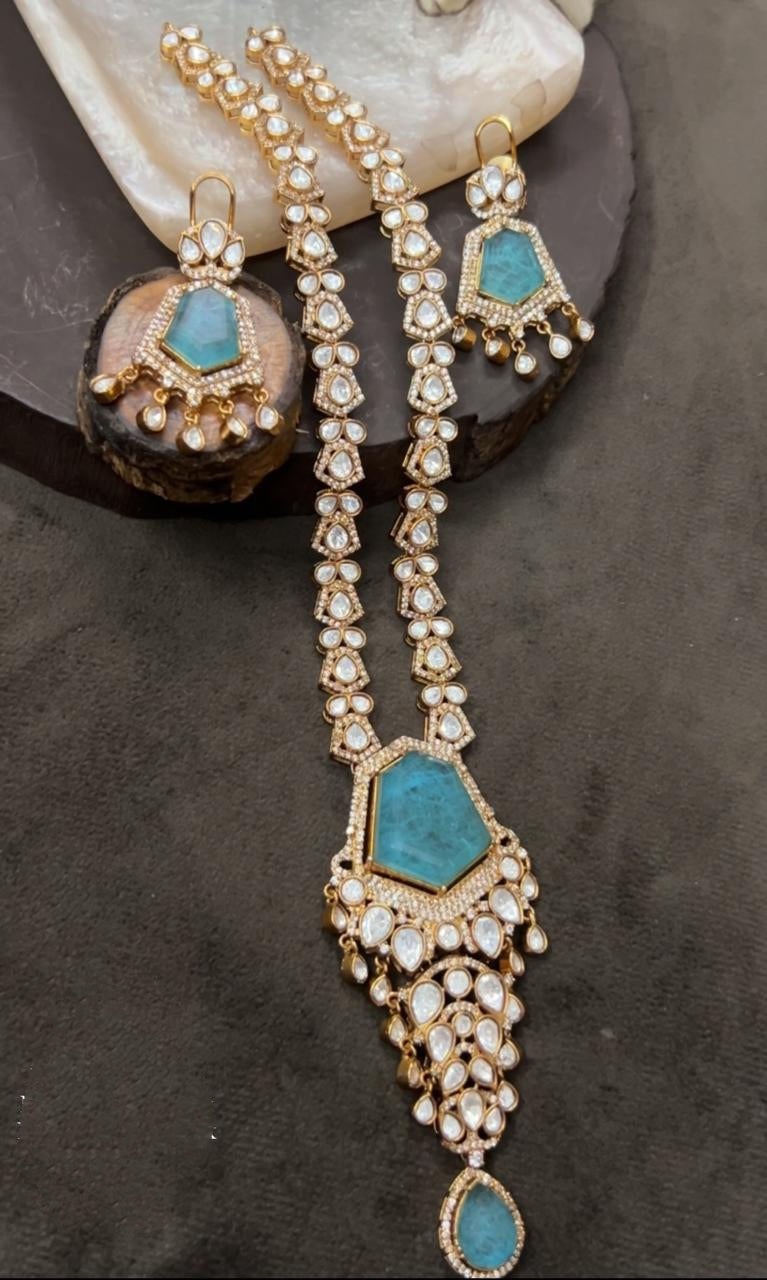 One Pair of Matching Kundan Drop Earrings: Lightweight and comfortable for extended wear, completing your look with effortless grace.