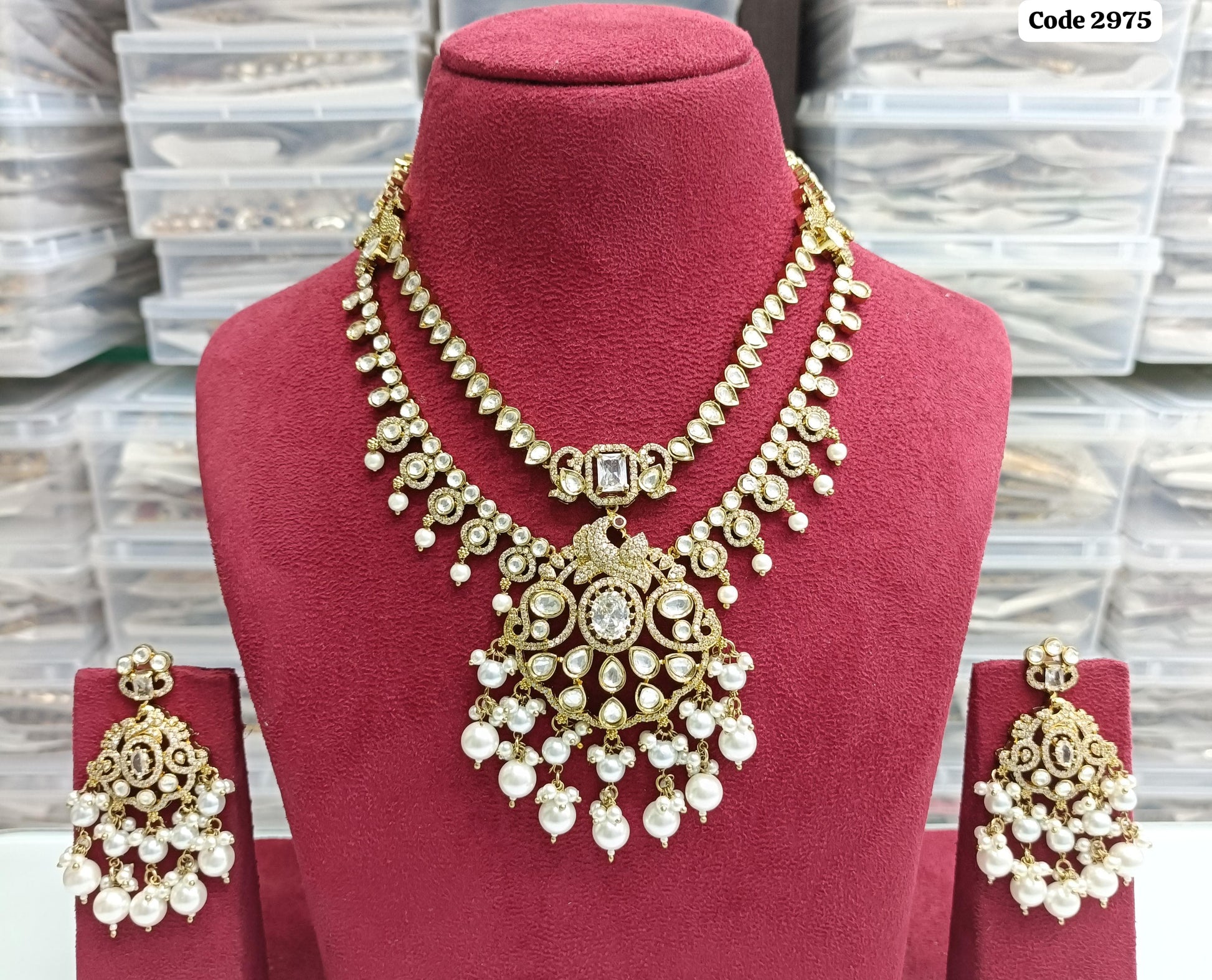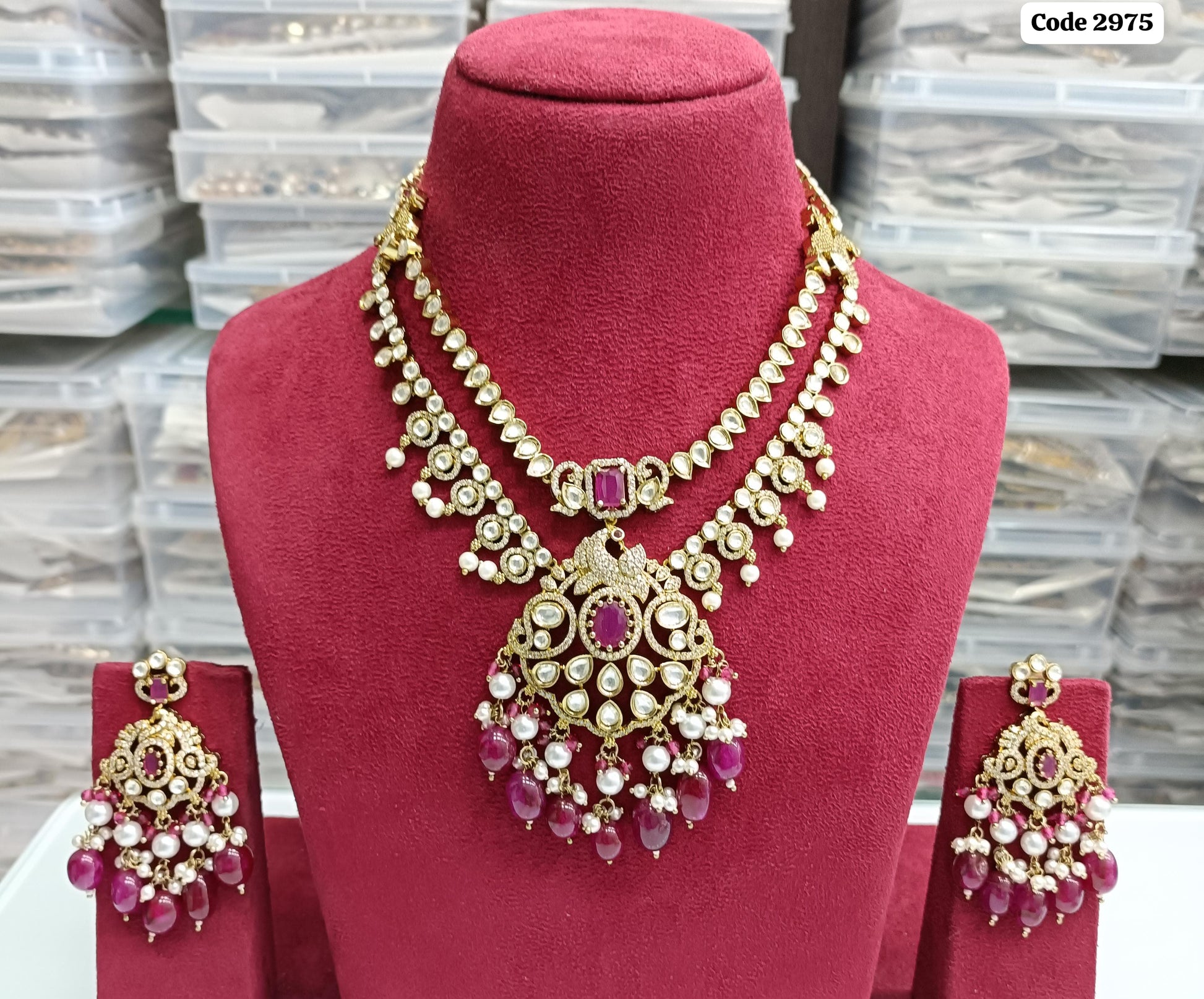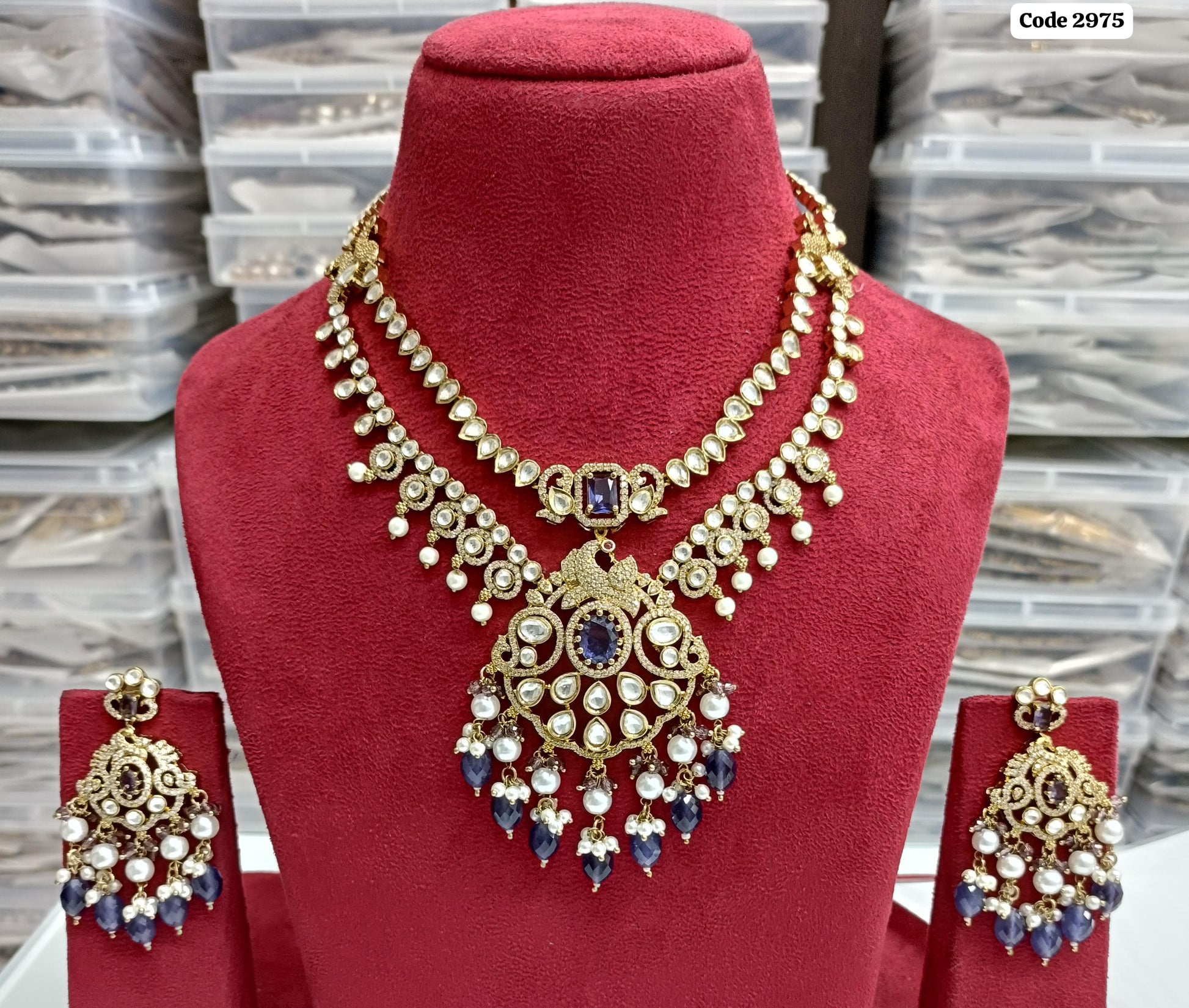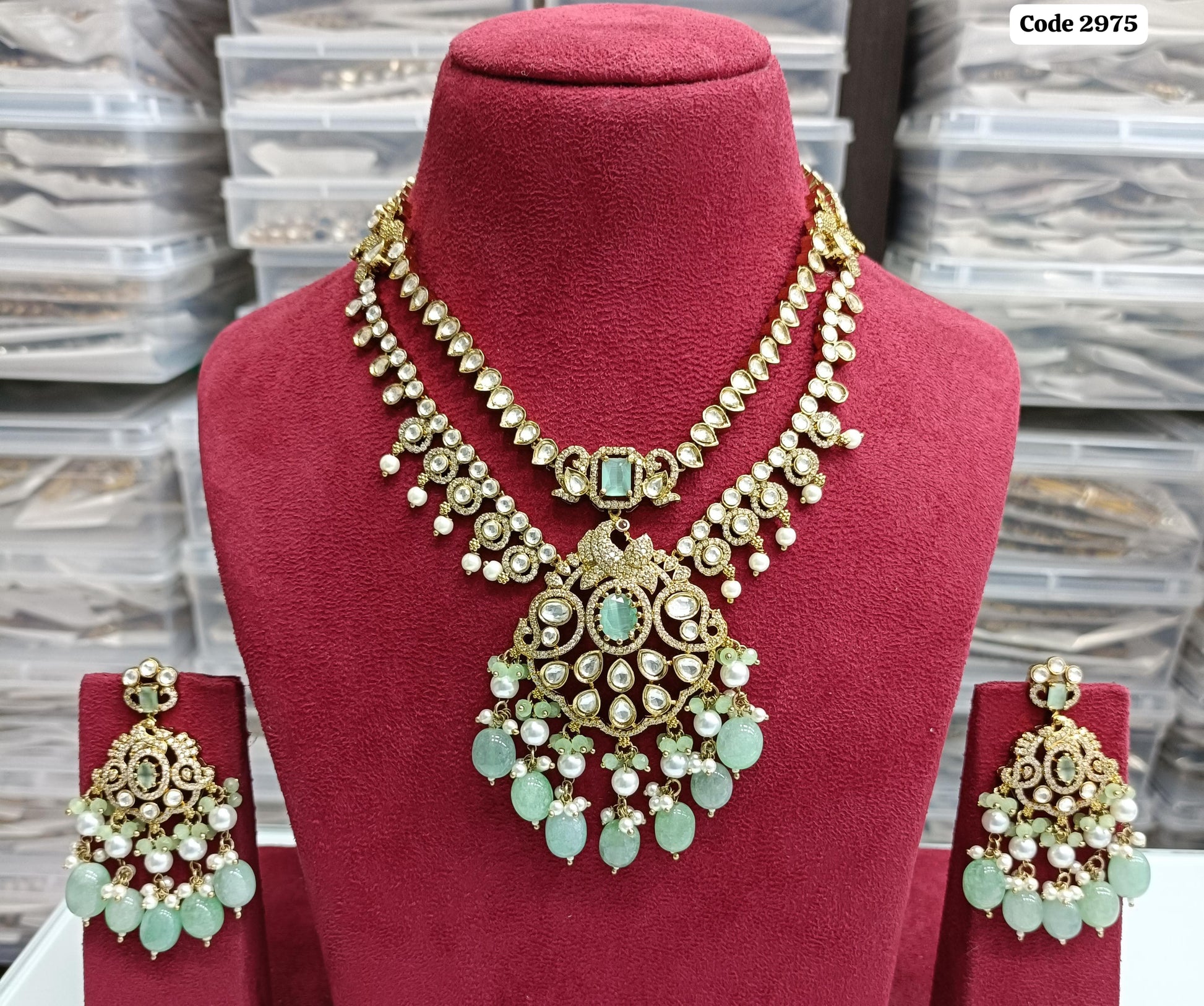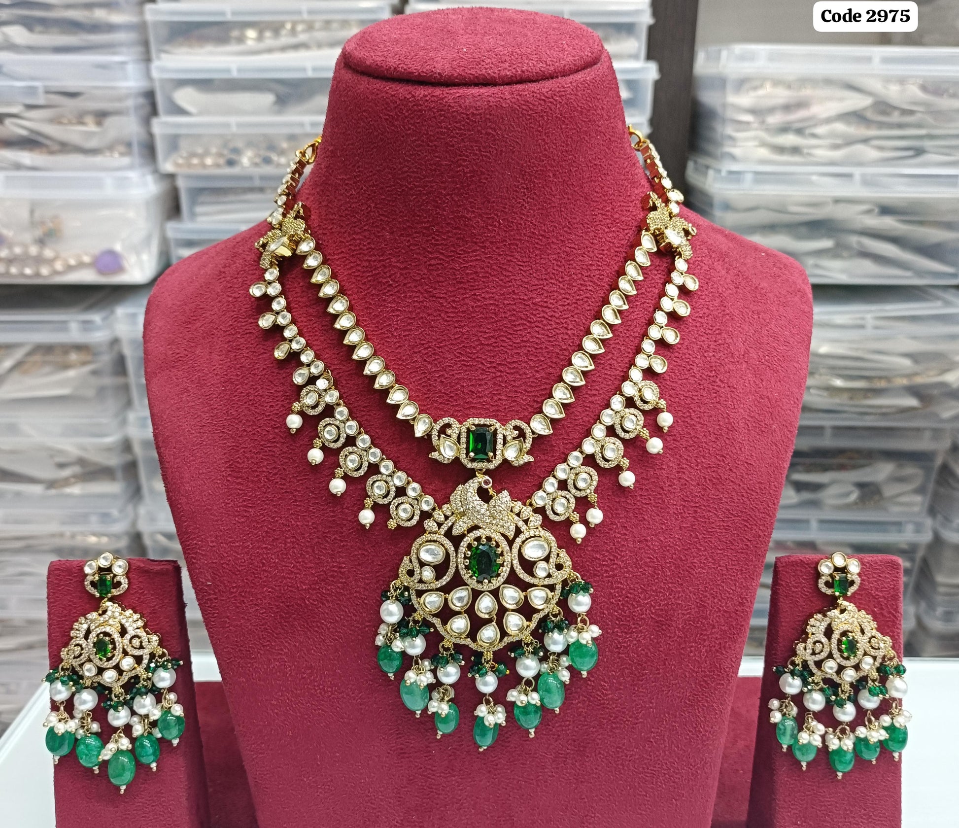Indulge in opulent sophistication with our premium Polki Kundan Choker Set, meticulously crafted to captivate admirers. Each piece exudes timeless elegance, featuring intricately detailed Polki Kundan embellishments that radiate luxury and grace. Our artisans meticulously select high-quality materials to ensure durability and lasting brilliance, promising a timeless addition to your jewelry collection. The choker and earrings boast superior craftsmanship, blending traditional allure with modern finesse. Elevate any ensemble with the unmatched allure of our exquisite set, perfect for special occasions and cherished moments. Experience the epitome of refinement and sophistication with this premium jewelry ensemble.